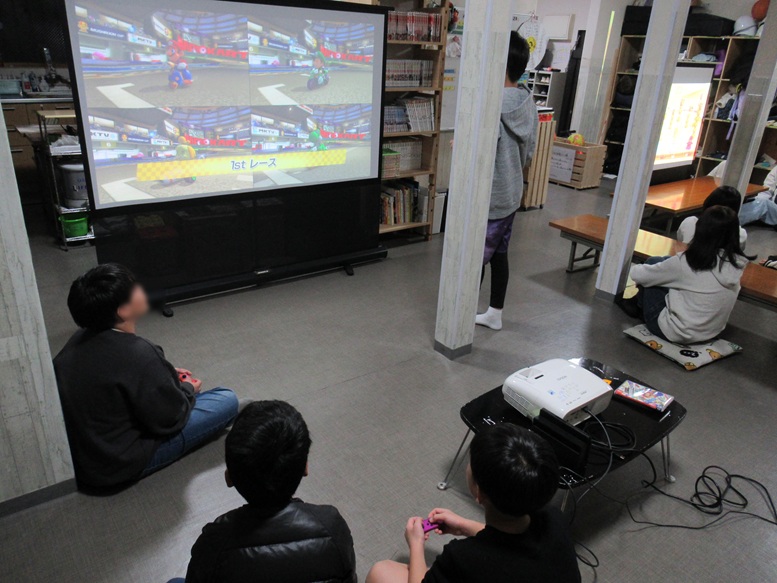 複数人同時対戦ゲームやパーティーゲーム・レースゲームを楽しんでいました。このゲームの時間にも10人位はいたので、交代しながらプレイしていると時間はあっという間に過ぎてしまい、盛り上がってきたところで『夕食か~・・・』なんてことになりました。