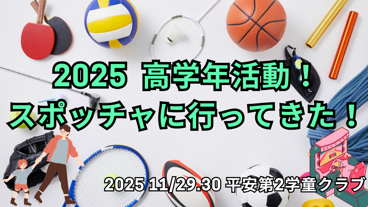年に1回の高学年だけのお楽しみイベントが今年も開催されました。『みんなでゲーム・スポッチャ・学童でお泊りをする』例年と同じような内容ですが、メンバーも変われば雰囲気も違った感じになりそうです。